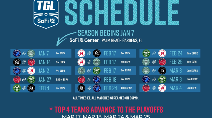 Cada evento de TGL complementa el calendario del PGA Tour. Los partidos semanales culminan en los playoffs, que finalizan con un equipo ganando la Copa SoFi.